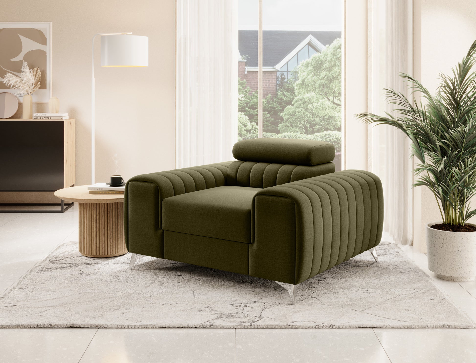 Fotel wypoczynkowy Laurence to wyjątkowo komfortowy i eleganckie sposób na udany relaks. Jego wyjątkowy design i starannie dobrane materiały gwarantują maksymalny komfort podczas siedzenia, a nietuzinkowy wygląd olśniewa każdego, kto na niego spojrzy. Dzięki temu Twój kącik wypoczynkowy stanie się wyjątkowym miejscem, w którym porządnie się zrelaksujesz.