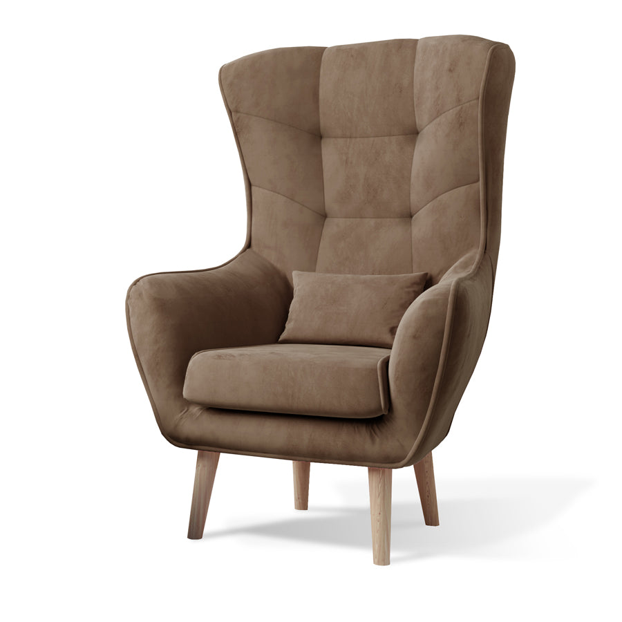 Fotel Arti jest zaprojektowany tak, aby wpisał się w obowiązujący skandynawski design, ale dzięki swojej ponadczasowej formie idealnie będzie też pasował do wnętrz klasycznych. Jego wysokie oparcie i drewniane nogi nadają mu elegancji, a zarazem zapewniają doskonały komfort. Drewno użyte w meblach sprawia, że czujemy się bliżej natury oraz zapewniamy sobie wyjątkową atmosferę wnętrza.