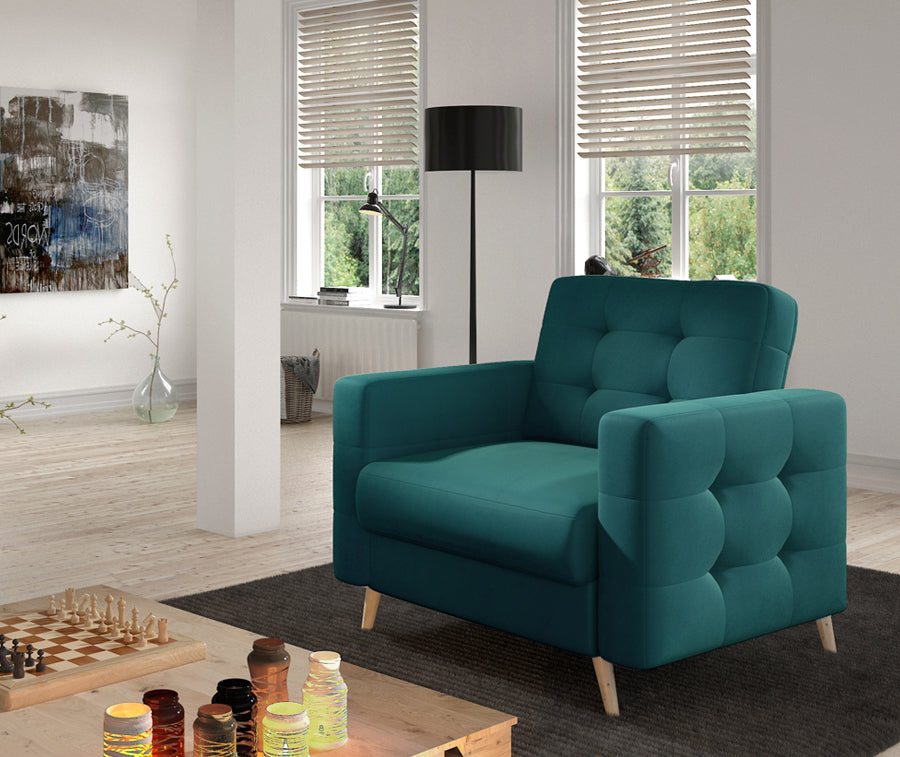 Fotel Asgard w klasycznym designie wzbogaci każdą przestrzeń w domowym zaciszu. Fotel posiada głębokie, gładkie siedzisko i ozdobne pikowania na bokach oraz na oparciu mebla. Całość prezentuje się niespotykanie lekko, dzięki drewnianym, toczonym nogom, które dodają eleganckiego wymiaru. Fotel ten, w zależności od preferencji, można postawić zarówno w sypialni, jak i salonie czy gabinecie. Plusem tego modelu z kolekcji mebli tapicerowanych ELTAP jest także obszerna poducha w siedzisku wypełniona pianką T30, która zapewnia wygodne miejsce do siedzenia i relaksu. Ten rodzaj pianki tapicerskiej ma doskonałą twardość, idealną sprężystość, a także dużą gęstość. W siedzisku mebla zastosowano również sprężynę falistą, a ta charakteryzuje się zwiększoną odpornością na zagniecenia – w związku z tym siedzisko jest stabilne. Położona na sprężynach gąbka nie będzie się wygniatała, a także zyska na trwałości.