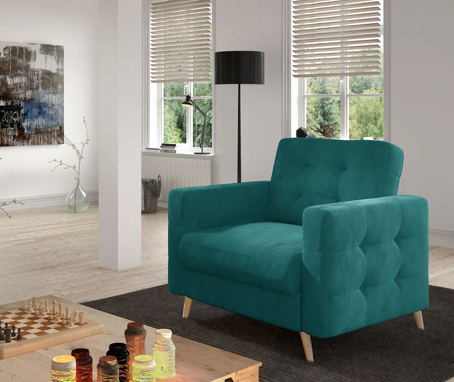 Fotel Asgard w klasycznym designie wzbogaci każdą przestrzeń w domowym zaciszu. Fotel posiada głębokie, gładkie siedzisko i ozdobne pikowania na bokach oraz na oparciu mebla. Całość prezentuje się niespotykanie lekko, dzięki drewnianym, toczonym nogom, które dodają eleganckiego wymiaru. Fotel ten, w zależności od preferencji, można postawić zarówno w sypialni, jak i salonie czy gabinecie. Plusem tego modelu z kolekcji mebli tapicerowanych ELTAP jest także obszerna poducha w siedzisku wypełniona pianką T30, która zapewnia wygodne miejsce do siedzenia i relaksu. Ten rodzaj pianki tapicerskiej ma doskonałą twardość, idealną sprężystość, a także dużą gęstość. W siedzisku mebla zastosowano również sprężynę falistą, a ta charakteryzuje się zwiększoną odpornością na zagniecenia – w związku z tym siedzisko jest stabilne. Położona na sprężynach gąbka nie będzie się wygniatała, a także zyska na trwałości.