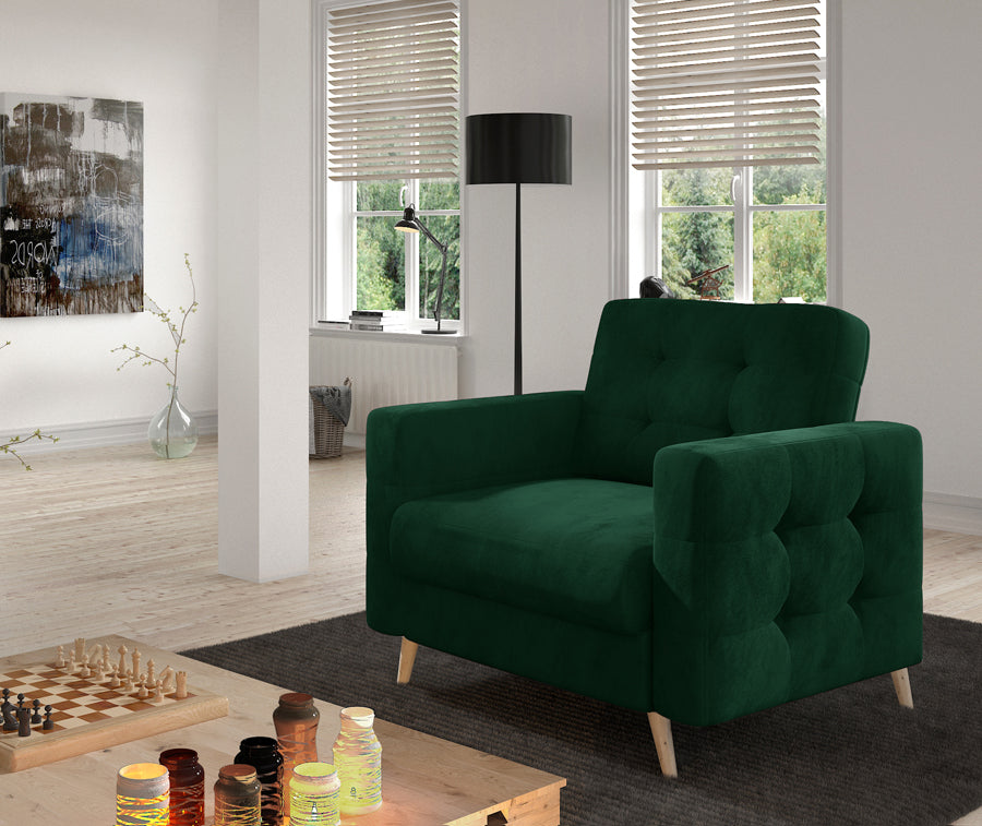 Fotel Asgard w klasycznym designie wzbogaci każdą przestrzeń w domowym zaciszu. Fotel posiada głębokie, gładkie siedzisko i ozdobne pikowania na bokach oraz na oparciu mebla. Całość prezentuje się niespotykanie lekko, dzięki drewnianym, toczonym nogom, które dodają eleganckiego wymiaru. Fotel ten, w zależności od preferencji, można postawić zarówno w sypialni, jak i salonie czy gabinecie. Plusem tego modelu z kolekcji mebli tapicerowanych ELTAP jest także obszerna poducha w siedzisku wypełniona pianką T30, która zapewnia wygodne miejsce do siedzenia i relaksu. Ten rodzaj pianki tapicerskiej ma doskonałą twardość, idealną sprężystość, a także dużą gęstość. W siedzisku mebla zastosowano również sprężynę falistą, a ta charakteryzuje się zwiększoną odpornością na zagniecenia – w związku z tym siedzisko jest stabilne. Położona na sprężynach gąbka nie będzie się wygniatała, a także zyska na trwałości.