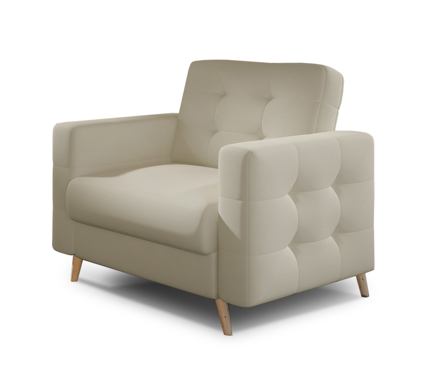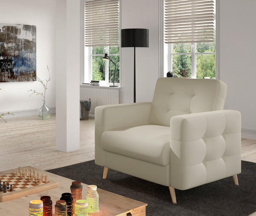 Fotel Asgard w klasycznym designie wzbogaci każdą przestrzeń w domowym zaciszu. Fotel posiada głębokie, gładkie siedzisko i ozdobne pikowania na bokach oraz na oparciu mebla. Całość prezentuje się niespotykanie lekko, dzięki drewnianym, toczonym nogom, które dodają eleganckiego wymiaru. Fotel ten, w zależności od preferencji, można postawić zarówno w sypialni, jak i salonie czy gabinecie. Plusem tego modelu z kolekcji mebli tapicerowanych ELTAP jest także obszerna poducha w siedzisku wypełniona pianką T30, która zapewnia wygodne miejsce do siedzenia i relaksu. Ten rodzaj pianki tapicerskiej ma doskonałą twardość, idealną sprężystość, a także dużą gęstość. W siedzisku mebla zastosowano również sprężynę falistą, a ta charakteryzuje się zwiększoną odpornością na zagniecenia – w związku z tym siedzisko jest stabilne. Położona na sprężynach gąbka nie będzie się wygniatała, a także zyska na trwałości.