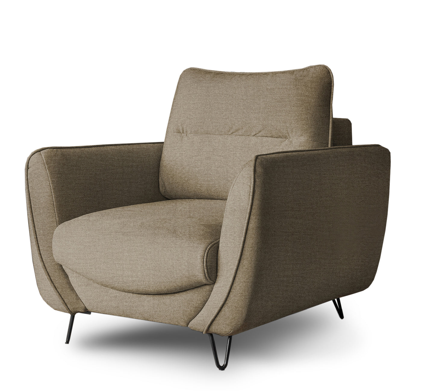 Fotel do salonu Silva to propozycja, obok której nie przejdzie obojętnie żaden miłośnik nowoczesnej elegancji. Prezentowany produkt rozpoczyna się niebanalnymi, metalowymi nogami. Elementy czerpią inspirację z kształtu spinek do włosów (tzw. hairpin legs), dzięki czemu nie tylko zapewniają całości stabilność i nie rysują podłogi, ale również pięknie kontrastują z klasycznym korpusem. W ten sposób projektantom udało się ożywić bryłę i sprawić, że zdecydowanie wyróżni się ona na tle pozostałych części aranżacji. Fotel wypoczynkowy Silva to projekt na miarę XXI wieku. Model ten pochwalić się może bowiem zastosowaniem nowoczesnych materiałów, dzięki czemu korzystanie z niego okaże się dla Ciebie wyjątkowo przyjemne. Siedzisko fotela wypełniono pianką HR 3040 oraz sprężynami falistymi typu B. Pianka HR to pianka wysokoelastyczna o nieregularnej strukturze wewnętrznej - tworzą ją bowiem miliony drobnych pęcherzyków. Nic więc dziwnego, że wyróżnia się ona znaczną sprężystością oraz odpornością na zniekształcenia, które wspólnie pozwalają fotelowi poradzić sobie z codziennymi przeciążeniami. I to bez zmiany kształtu wyjściowego! Dodatkowo pianka HR wspomagana sprężynami powoduje, że siedzisko mebla lepiej dopasuje się do Twojego ciała, zapewniając mu lepsze podparcie. Oparcie fotela Silva to specjalny granulat piankowy. Jest to połączenie różnych rodzajów pianek w postaci drobnych kuleczek. Mebel jest zatem w stanie delikatnie otulić Twoje ciało, otaczając je niezapomnianą miękkością. Jeśli więc oprzesz plecy o oparcie modelu Silva, to szybko poczujesz, jak opuszcza Cię nagromadzone w czasie dnia napięcie! Możesz zatem uciąć sobie na nim małą, popołudniową drzemkę lub spędzić leniwą niedzielę, oglądając ciekawy serial.