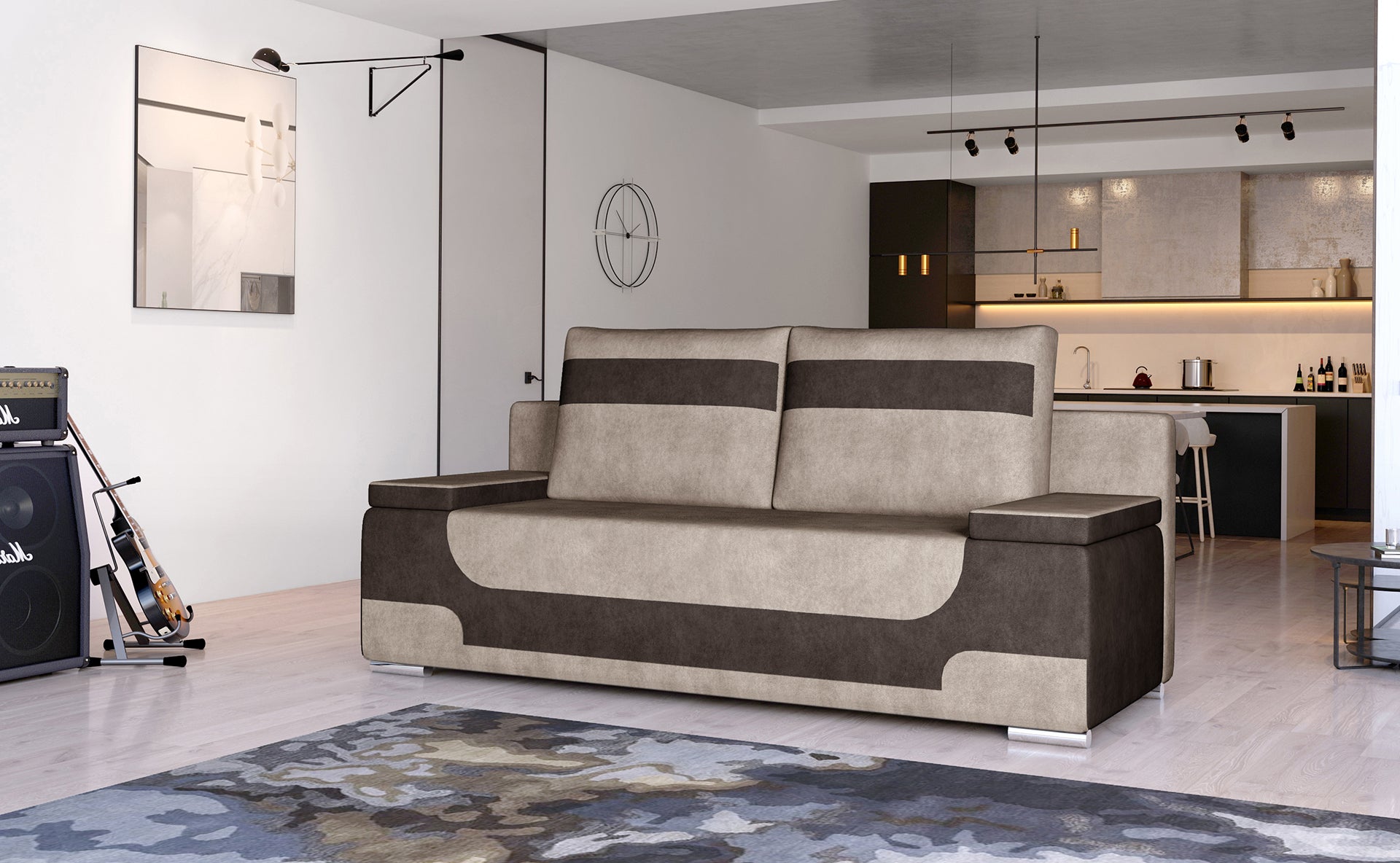 Model Area posiada wymiary 200x95x90cm, dzięki czemu zapewnia wygodną przestrzeń do odpoczynku w ciągu dnia. Za sprawą dodatkowej opcji w postaci możliwości rozłożenia do funkcji spania, użytkownik otrzymuje dodatkowe miejsce do nocnego wypoczynku o wymiarach 200x140cm. Intuicyjna forma rozkładania polegająca na przewracanym oparciu umożliwia szybkie dopasowanie mebla do aktualnych potrzeb. Kanapa posiada dodatkowe udogodnienie w postaci pojemnego schowka na pościel wspomaganego mechanizmem otwierania DL. Dzięki zastosowaniu bonelu i pianki T25 siedzisko kanapy jest wyjątkowo miękkie i elastyczne przy równoczesnym prawidłowym utrzymaniu ciała w trakcie odpoczynku. Wszystkie te elementy wpływają na to, że kanapa Area określana jest mianem funkcjonalnego mebla zapewniającego komfort na najwyższym poziomie. Chcąc urządzić wnętrze salonu w nowoczesnym klimacie postaw na model Area, który równie dobrze sprawdzi się w salonie, w którym dominuje minimalizm, jak i nowojorski styl.