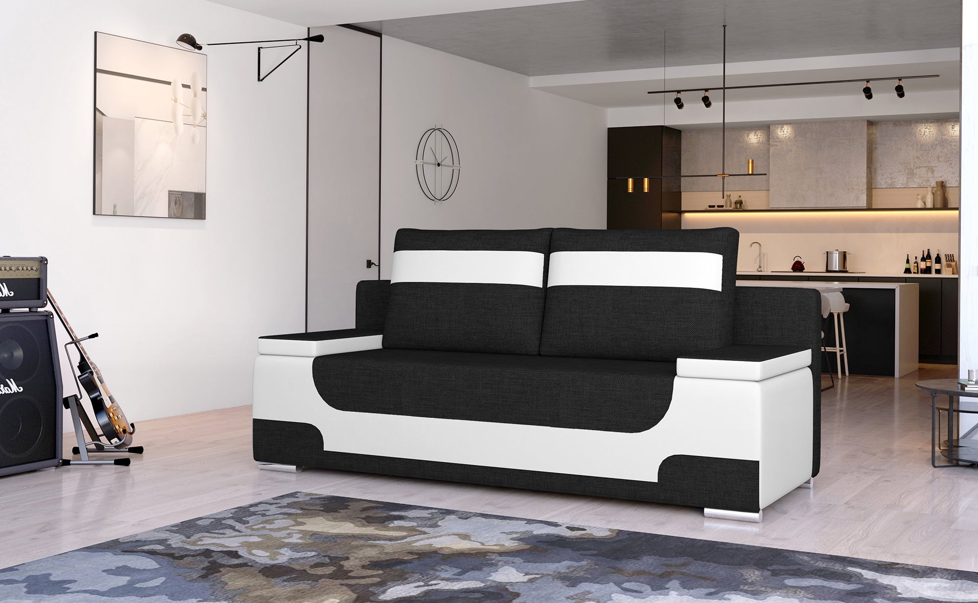 Model Area posiada wymiary 200x95x90cm, dzięki czemu zapewnia wygodną przestrzeń do odpoczynku w ciągu dnia. Za sprawą dodatkowej opcji w postaci możliwości rozłożenia do funkcji spania, użytkownik otrzymuje dodatkowe miejsce do nocnego wypoczynku o wymiarach 200x140cm. Intuicyjna forma rozkładania polegająca na przewracanym oparciu umożliwia szybkie dopasowanie mebla do aktualnych potrzeb. Kanapa posiada dodatkowe udogodnienie w postaci pojemnego schowka na pościel wspomaganego mechanizmem otwierania DL. Dzięki zastosowaniu bonelu i pianki T25 siedzisko kanapy jest wyjątkowo miękkie i elastyczne przy równoczesnym prawidłowym utrzymaniu ciała w trakcie odpoczynku. Wszystkie te elementy wpływają na to, że kanapa Area określana jest mianem funkcjonalnego mebla zapewniającego komfort na najwyższym poziomie. Chcąc urządzić wnętrze salonu w nowoczesnym klimacie postaw na model Area, który równie dobrze sprawdzi się w salonie, w którym dominuje minimalizm, jak i nowojorski styl.