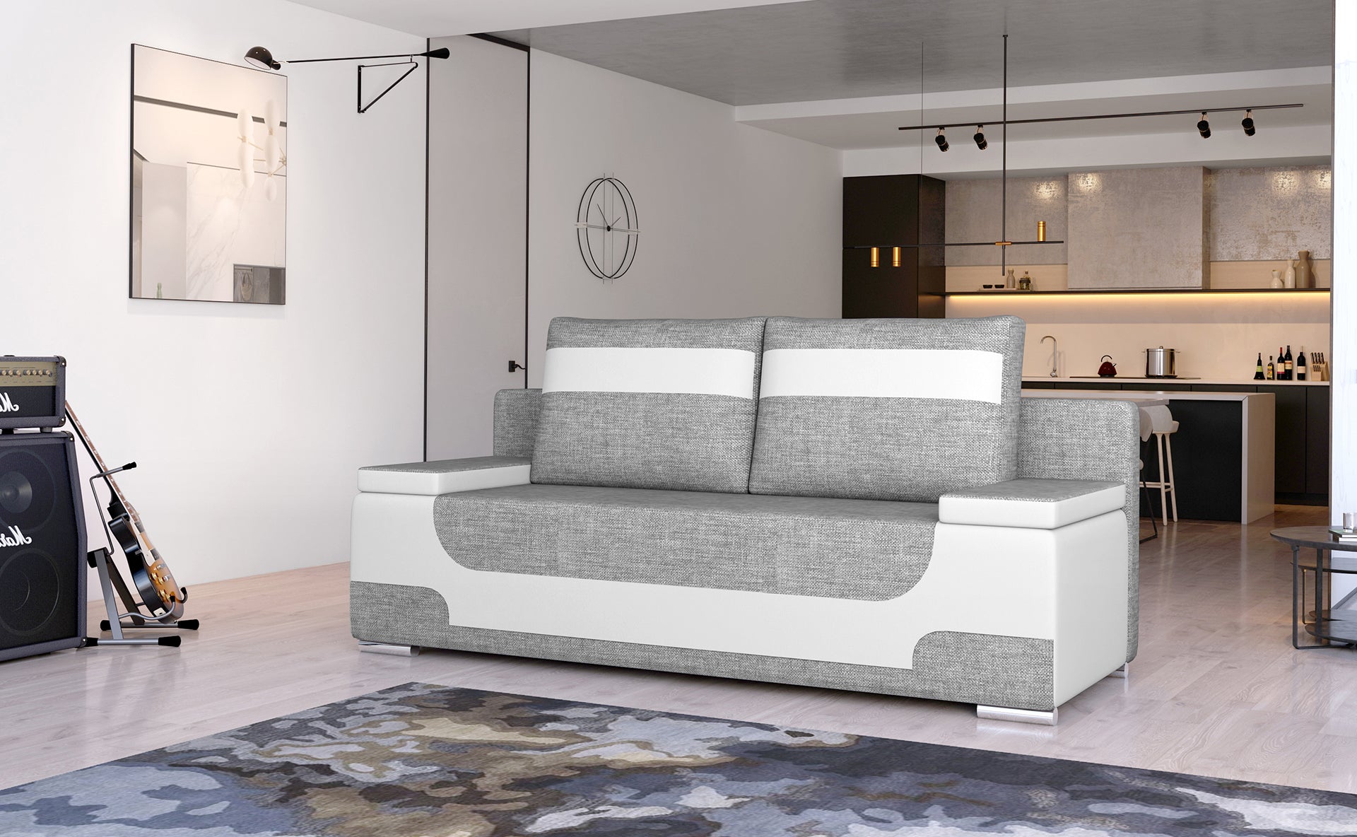 Model Area posiada wymiary 200x95x90cm, dzięki czemu zapewnia wygodną przestrzeń do odpoczynku w ciągu dnia. Za sprawą dodatkowej opcji w postaci możliwości rozłożenia do funkcji spania, użytkownik otrzymuje dodatkowe miejsce do nocnego wypoczynku o wymiarach 200x140cm. Intuicyjna forma rozkładania polegająca na przewracanym oparciu umożliwia szybkie dopasowanie mebla do aktualnych potrzeb. Kanapa posiada dodatkowe udogodnienie w postaci pojemnego schowka na pościel wspomaganego mechanizmem otwierania DL. Dzięki zastosowaniu bonelu i pianki T25 siedzisko kanapy jest wyjątkowo miękkie i elastyczne przy równoczesnym prawidłowym utrzymaniu ciała w trakcie odpoczynku. Wszystkie te elementy wpływają na to, że kanapa Area określana jest mianem funkcjonalnego mebla zapewniającego komfort na najwyższym poziomie. Chcąc urządzić wnętrze salonu w nowoczesnym klimacie postaw na model Area, który równie dobrze sprawdzi się w salonie, w którym dominuje minimalizm, jak i nowojorski styl.