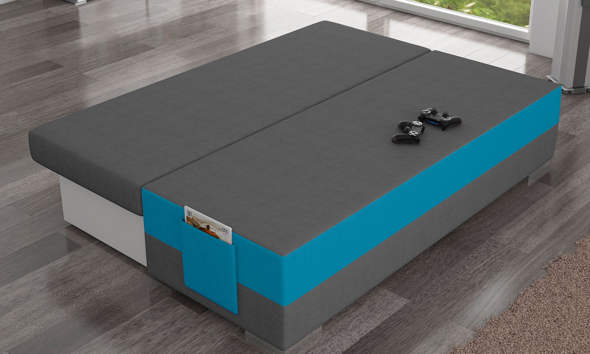 Jeśli szukasz nowoczesnego mebla o prostej konstrukcji i niebanalnych elementach dekoracyjnych, kanapa Atila jest strzałem w dziesiątkę! Geometryczny kształt, solidna konstrukcja, a wszystko to przełamane oryginalną estetyką, w jakiej mebel został utrzymany. Model Atila dostępny jest w zestawieniu dwóch wersji kolorystycznych. Na wyrazistość mebla wpływa odznaczający się pas przechodzący przez boki mebla oraz oparcie, a także obszerne poduszki stanowiące dodatkowy element dekoracyjny znacząco wpływający na komfort wypoczynku. Elementem nowatorskim jest boczna kieszeń usytuowana na jednej ze stron mebla. Kieszeń może pełnić funkcję schowka na drobiazgi, prasę lub książkę. Takie udogodnienie sprawia, że odpoczynek nabiera na wyjątkowości.