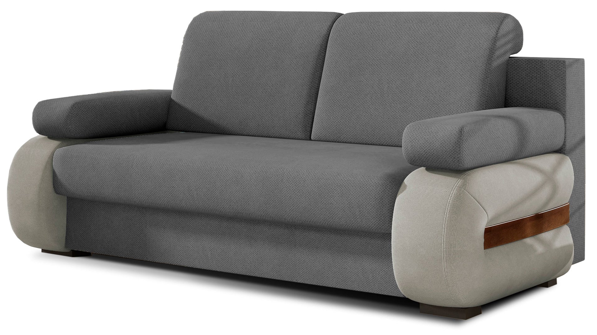 Klasyczna forma zestawiona z nowoczesnym designem daje efekt w postaci kanapy Laura. Prosta, niezawodna konstrukcja, przestronne, wygodne podłokietniki i elementy w stylu vintage w postaci drewnianych wstawek umiejscowionych po bokach mebla tworzą spójną, elegancką całość. Mebel utrzymany jest w stylistyce łączącej dwa odcienie tapicerki. Główna część mebla w postaci oparcia, podłokietników i siedziska posiada spójny kolor, natomiast boczna część kanapy stanowi element kontrastowy. Dzięki szerokiej ofercie kolorystycznej mebel bez trudu można dopasować do stylistyki, jaka panuje w salonie. Obszerne poduszki stanowiące element oparcia poprawiają komfort odpoczynku, natomiast odpowiednie wyprofilowanie mebla pozwalają odciążyć plecy podczas domowego relaksu.