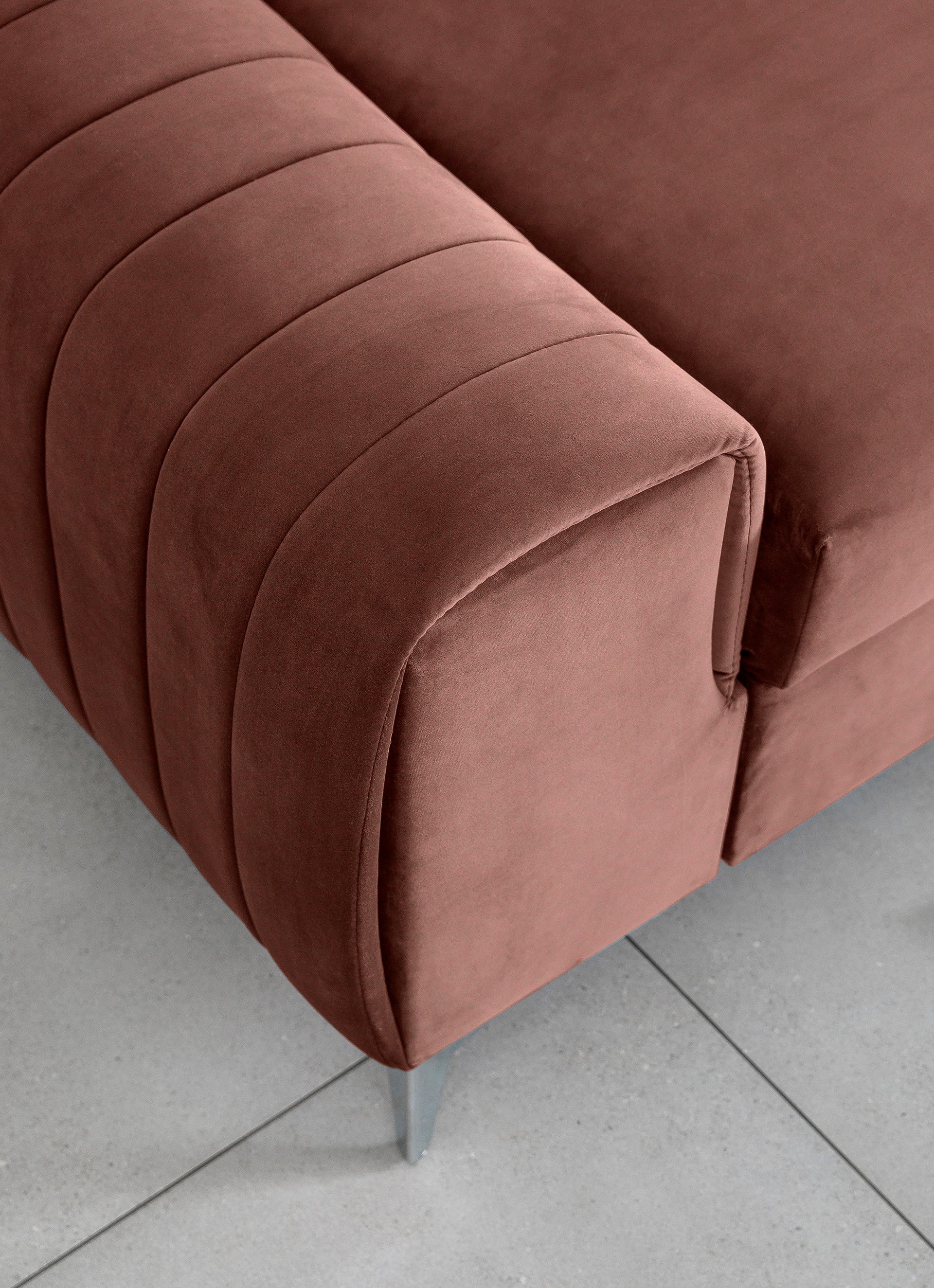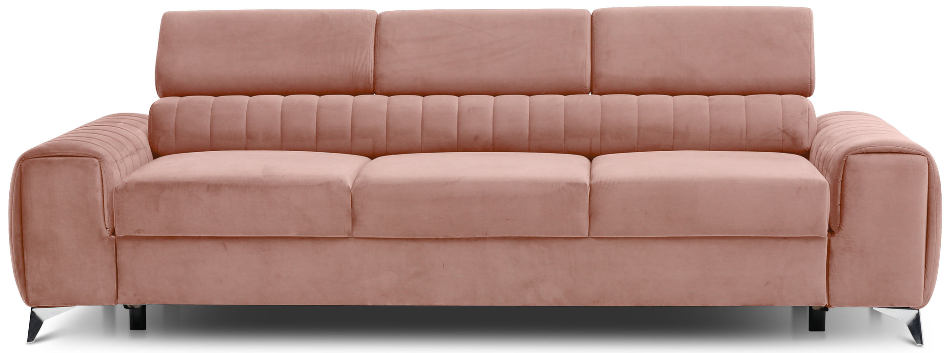 Kanapa Laurence ma solidną konstrukcję i drewnianą ramę, która opiera się na zwężających się, ukośnych, metalowych, chromowanych nogach, co zapewnia efekt glamour oraz klasycznego piękna z nutką nowoczesności. Otulona eleganckimi tkaninami z kolekcji ELTAP rozkładana sofa jest wypełniona piankami HR i T30, a także wspierana przez solidne sprężyny faliste typu B, które zapewniają optymalne poczucie komfortu. Kanapa Laurence wprowadza do wnętrza lekkość i elegancję. Klasyczną bryłę mebla przełamują przeszycia i wyraźnie podkreślony podział mebla na trzy miejsca w siedzisku. Wszystko to sprawia, że nasz mebel tapicerowany wygląda stylowo i elegancko bez względu na to, gdzie go postawisz. Z pewnością stanie się hitem zarówno wśród odwiedzających dom przyjaciół, jak i rodziny. Kanapa Laurence to idealny wybór do małych pomieszczeń, gdzie nie ma opcji wstawienia narożnika, ponieważ jej wymiary to: 261x97x75 centymetrów. Wysokość nóżek pozwala na sprzątanie pod kanapą nowoczesnymi robotami sprzątającymi, ponieważ wynosi 9 cm. Kolejnym świetnym pomysłem zastosowanym w kanapie Laurence jest funkcja trzech ruchomych zagłówków. Dzięki temu zabiegowi można komfortowo wypoczywać i nie martwić się o niewygodne ułożenie ciała. Ta kanapa z funkcją spania prezentuje się elegancko i estetycznie. Jej nowoczesny wygląd wprowadzi wspaniałe wrażenie i doda stylu Twojej przestrzeni życiowej.