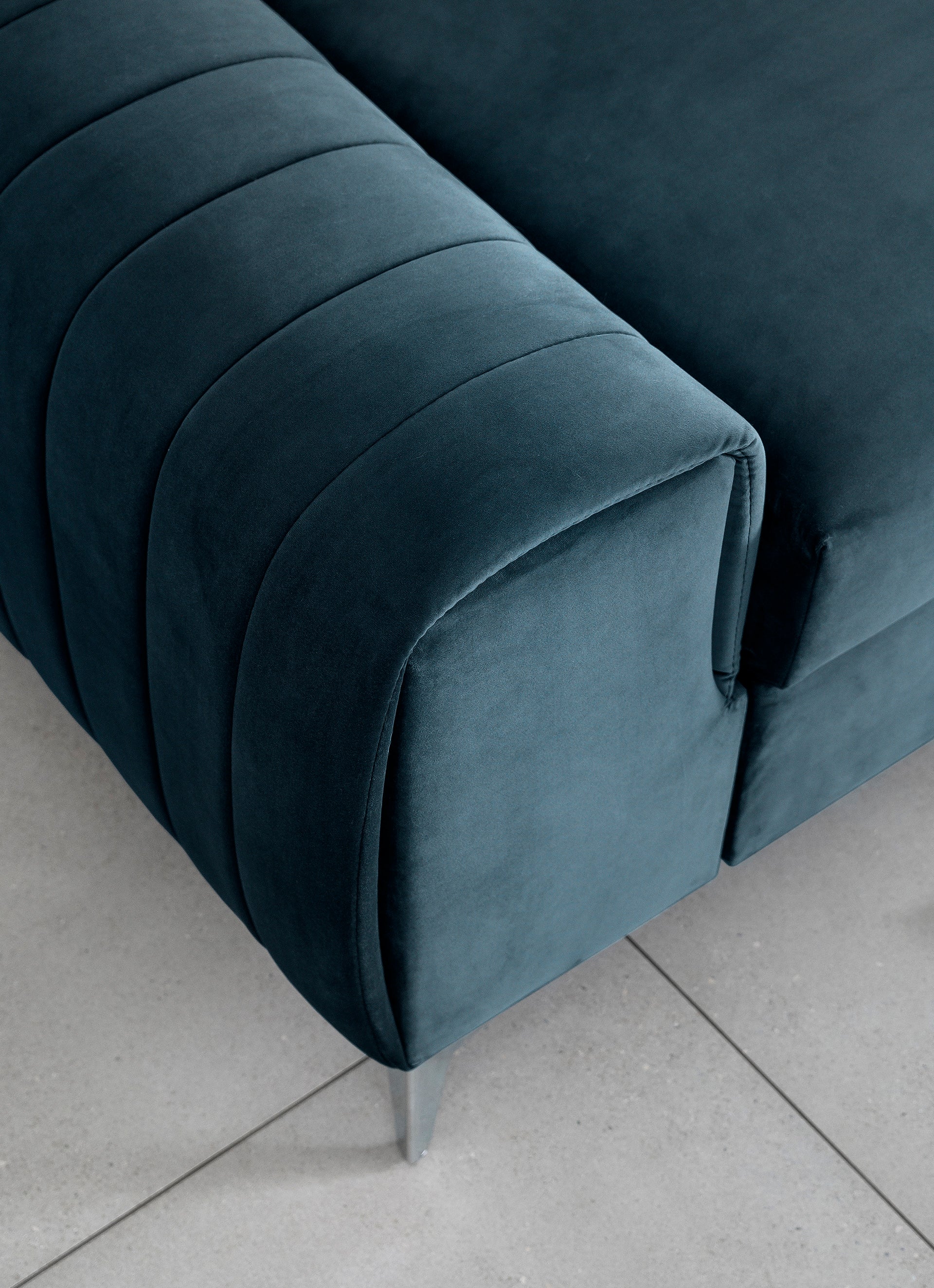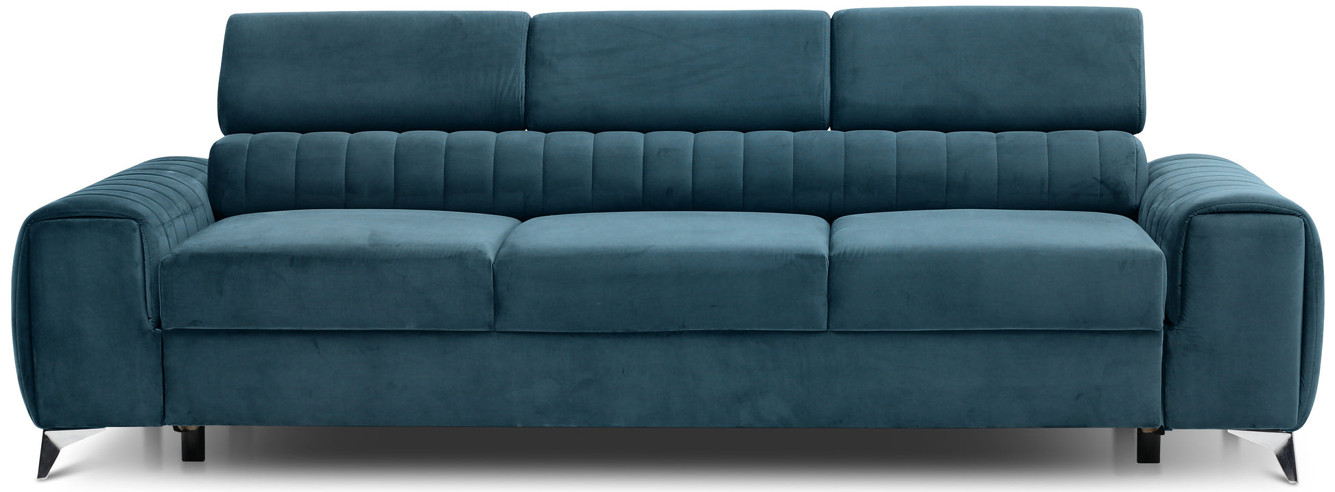 Kanapa Laurence ma solidną konstrukcję i drewnianą ramę, która opiera się na zwężających się, ukośnych, metalowych, chromowanych nogach, co zapewnia efekt glamour oraz klasycznego piękna z nutką nowoczesności. Otulona eleganckimi tkaninami z kolekcji ELTAP rozkładana sofa jest wypełniona piankami HR i T30, a także wspierana przez solidne sprężyny faliste typu B, które zapewniają optymalne poczucie komfortu. Kanapa Laurence wprowadza do wnętrza lekkość i elegancję. Klasyczną bryłę mebla przełamują przeszycia i wyraźnie podkreślony podział mebla na trzy miejsca w siedzisku. Wszystko to sprawia, że nasz mebel tapicerowany wygląda stylowo i elegancko bez względu na to, gdzie go postawisz. Z pewnością stanie się hitem zarówno wśród odwiedzających dom przyjaciół, jak i rodziny. Kanapa Laurence to idealny wybór do małych pomieszczeń, gdzie nie ma opcji wstawienia narożnika, ponieważ jej wymiary to: 261x97x75 centymetrów. Wysokość nóżek pozwala na sprzątanie pod kanapą nowoczesnymi robotami sprzątającymi, ponieważ wynosi 9 cm. Kolejnym świetnym pomysłem zastosowanym w kanapie Laurence jest funkcja trzech ruchomych zagłówków. Dzięki temu zabiegowi można komfortowo wypoczywać i nie martwić się o niewygodne ułożenie ciała. Ta kanapa z funkcją spania prezentuje się elegancko i estetycznie. Jej nowoczesny wygląd wprowadzi wspaniałe wrażenie i doda stylu Twojej przestrzeni życiowej.