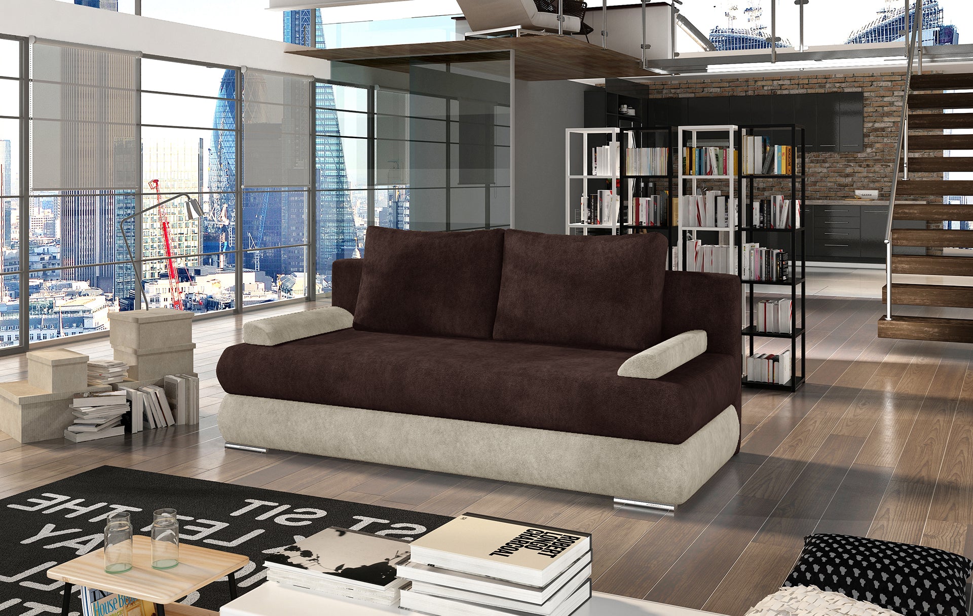 Klasyczny układ kanapy Milo sprawia, że ten rodzaj mebla wypoczynkowego idealnie sprawdza się zarówno w salonie utrzymanym w nowoczesnym, minimalistycznym, jak i klasycznym klimacie. Wszechstronność mebla zyskuje sporą rzeszę zwolenników poszukujących kanapy, którą bez problemu można skomponować z pozostałymi elementami wyposażenia wnętrza. Dwupoziomowe siedzisko, odpowiednio wyprofilowane oparcie, dekoracyjne, obszerne poduszki poprawiające komfort użytkowania, stylowe połyskujące nóżki oraz podłokietniki równocześnie pełniące funkcję zagłówków sprawiają, że kanapa Milo prezentuje się wyjątkowo stylowo, a równocześnie nie jest przesadzona w kwestii ilości elementów dekoracyjnych. Model ten dostępny jest w wersji dwukolorowej - oparcie, siedzisko oraz poduszki są utrzymane w jednej kolorystyce, natomiast podłokietniki i dolna część mebla posiadają odmienny, kontrastujący odcień. Dzięki temu oraz za sprawą możliwości wyboru zestawu kolorystycznego kanapa Milo bez trudu wpasuje się w ogólną stylistykę wnętrza.