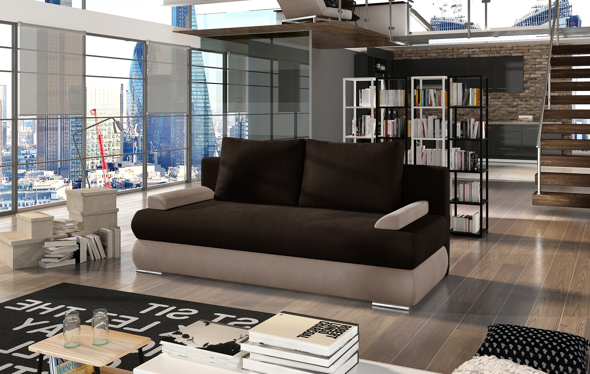 Klasyczny układ kanapy Milo sprawia, że ten rodzaj mebla wypoczynkowego idealnie sprawdza się zarówno w salonie utrzymanym w nowoczesnym, minimalistycznym, jak i klasycznym klimacie. Wszechstronność mebla zyskuje sporą rzeszę zwolenników poszukujących kanapy, którą bez problemu można skomponować z pozostałymi elementami wyposażenia wnętrza. Dwupoziomowe siedzisko, odpowiednio wyprofilowane oparcie, dekoracyjne, obszerne poduszki poprawiające komfort użytkowania, stylowe połyskujące nóżki oraz podłokietniki równocześnie pełniące funkcję zagłówków sprawiają, że kanapa Milo prezentuje się wyjątkowo stylowo, a równocześnie nie jest przesadzona w kwestii ilości elementów dekoracyjnych. Model ten dostępny jest w wersji dwukolorowej - oparcie, siedzisko oraz poduszki są utrzymane w jednej kolorystyce, natomiast podłokietniki i dolna część mebla posiadają odmienny, kontrastujący odcień. Dzięki temu oraz za sprawą możliwości wyboru zestawu kolorystycznego kanapa Milo bez trudu wpasuje się w ogólną stylistykę wnętrza.