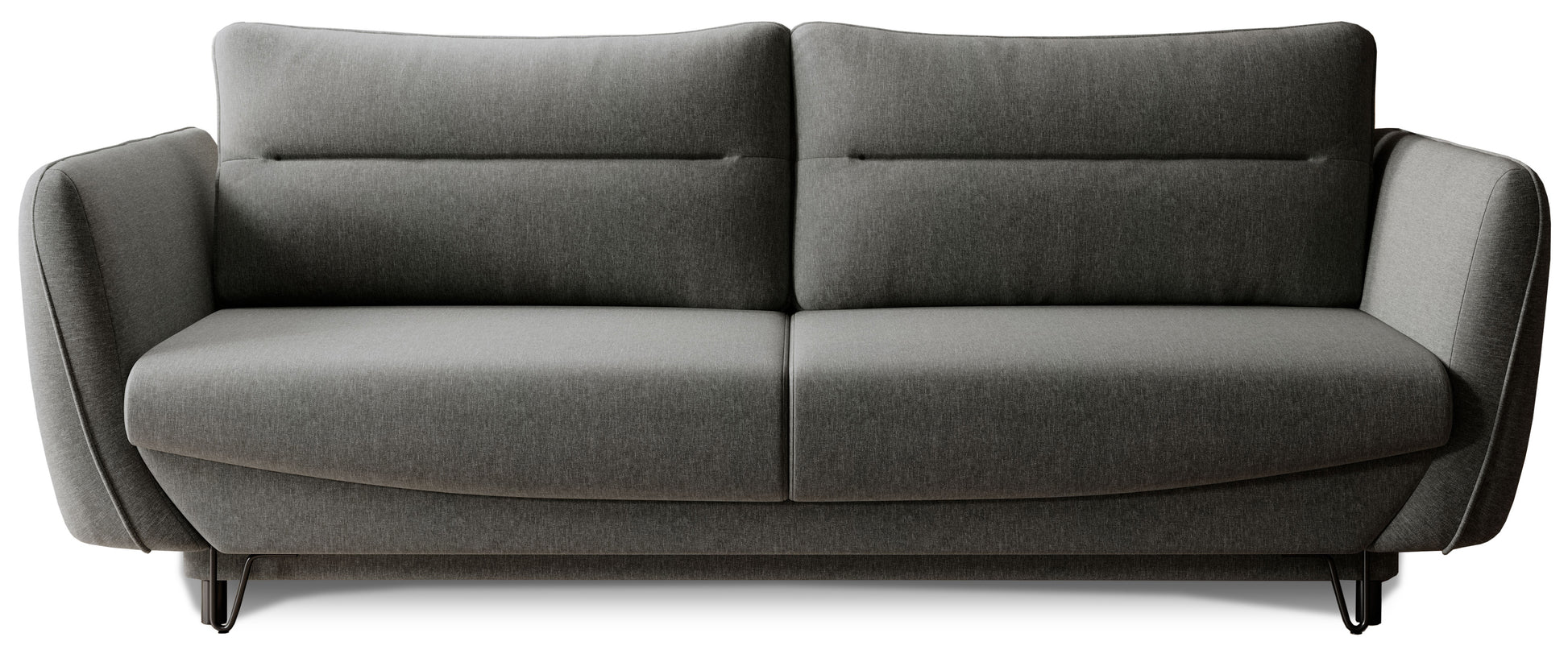 Sofa Silva to urocza kanapa, która zachwyca swoim subtelnym designem. Na szczególną uwagę zasługują nowoczesne, czarne, stalowe, długie nogi, które sprawiają, że sofa staje się mieszanką różnych stylów. Dzięki nim i możliwości wyboru koloru tkaniny, mebel bez problemu dopasowuje się do wielu aranżacji. Prócz walorów estetycznych Silva może pochwalić się też funkcjonalnością, a to za sprawą pojemnego schowka na pościel. Ciekawa konstrukcja mebla jest idealnym rozwiązaniem także w minimalistycznych wnętrzach, ponieważ jego wymiary to: 236 x 95 x 90 centymetrów. Wygodne oparcie w postaci poduszek z wypełnieniem pianką T25 w połączeniu z poduszkami siedzisk z wysokoelastyczną pianką HR zapewniają poczucie pełnego komfortu. Ponadto sofa jest też idealnym rozwiązaniem w przypadku wizyty niespodziewanych gości, ponieważ posiada funkcję spania. Pomimo kompaktowych rozmiarów, Silva daje możliwość zdrowego wypoczynku na powierzchni do spania 200 x 145 centymetrów. Automat DL wspomagający rozkładanie sofy sprawia, że staje się to szybie i dziecinnie proste.