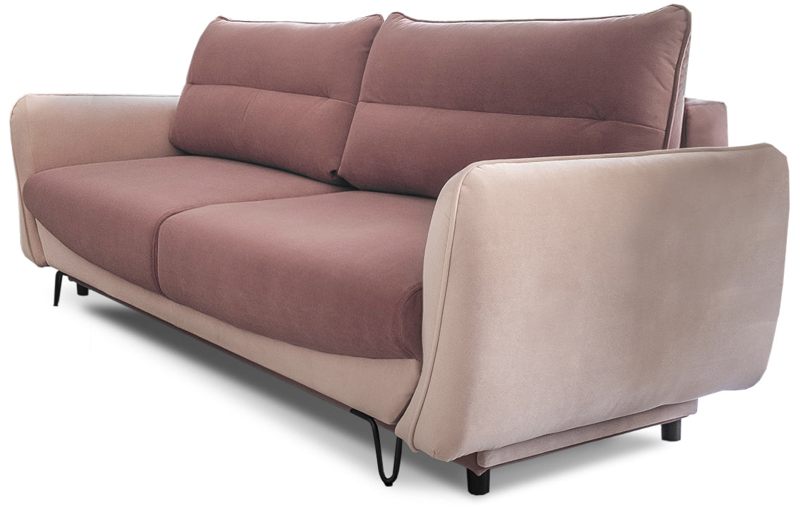 Sofa Silva to urocza kanapa, która zachwyca swoim subtelnym designem. Na szczególną uwagę zasługują nowoczesne, czarne, stalowe, długie nogi, które sprawiają, że sofa staje się mieszanką różnych stylów. Dzięki nim i możliwości wyboru koloru tkaniny, mebel bez problemu dopasowuje się do wielu aranżacji. Prócz walorów estetycznych Silva może pochwalić się też funkcjonalnością, a to za sprawą pojemnego schowka na pościel. Ciekawa konstrukcja mebla jest idealnym rozwiązaniem także w minimalistycznych wnętrzach, ponieważ jego wymiary to: 236 x 95 x 90 centymetrów. Wygodne oparcie w postaci poduszek z wypełnieniem pianką T25 w połączeniu z poduszkami siedzisk z wysokoelastyczną pianką HR zapewniają poczucie pełnego komfortu. Ponadto sofa jest też idealnym rozwiązaniem w przypadku wizyty niespodziewanych gości, ponieważ posiada funkcję spania. Pomimo kompaktowych rozmiarów, Silva daje możliwość zdrowego wypoczynku na powierzchni do spania 200 x 145 centymetrów. Automat DL wspomagający rozkładanie sofy sprawia, że staje się to szybie i dziecinnie proste.