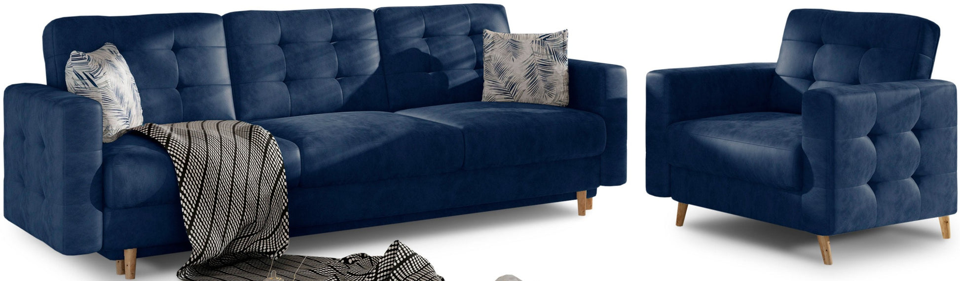 Komplet Asgard utrzymany jest w stylistyce pasującej zarówno do klimatu nowoczesnego, retro, loftowego, jak i skandynawskiego. Głębokie siedziska, wysokie oparcia i podłokietniki, stylowe, klasyczne drewniane nogi skośne oraz eleganckie pikowania - wszystko to sprawia, że zestaw ten wprowadzi do wnętrza salonu wyjątkowy klimat, zapewniając maksimum wygody podczas relaksu w domowym zaciszu. Jeśli chcesz, by salon w Twoim mieszkaniu zachęcał swoim wystrojem do relaksu, jesteś fanem eleganckich wnętrz z klimatem, zestaw Asgard jest kompletem wypoczynkowym, którego szukasz.