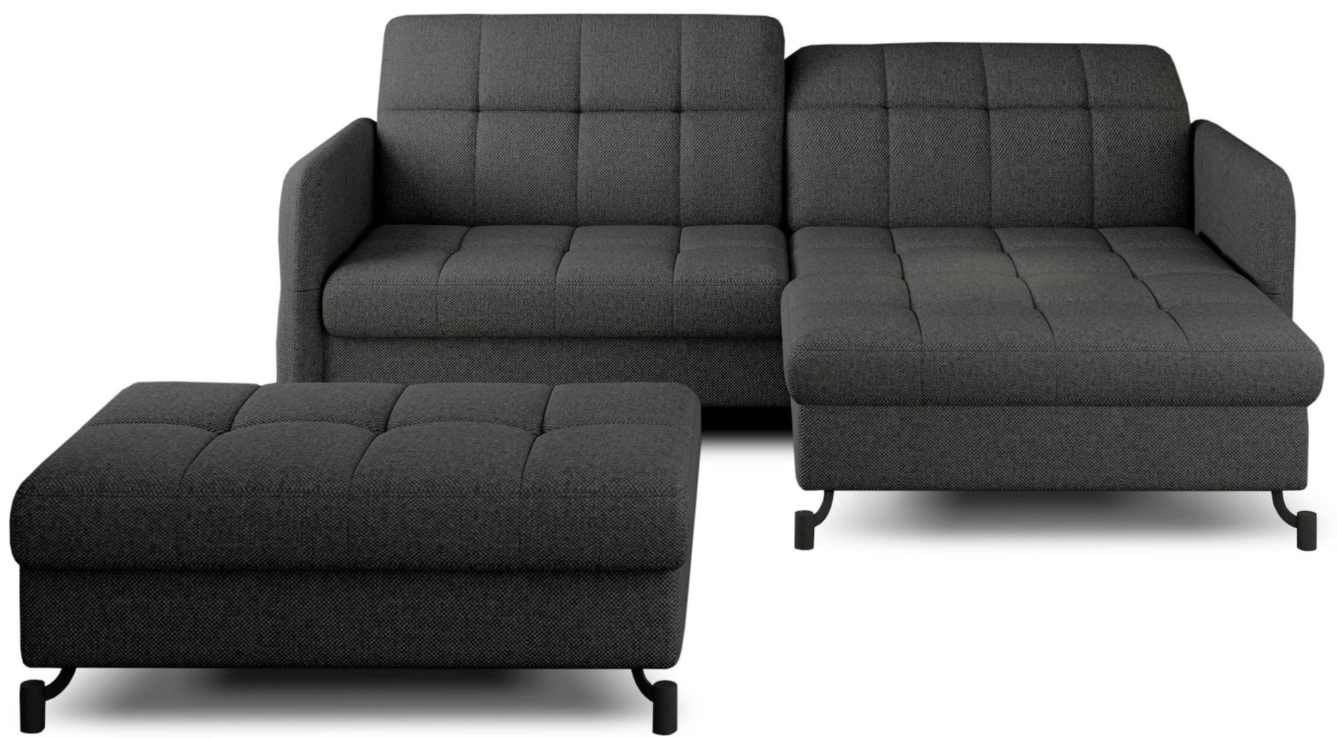 Zestaw Lorelle to rozwiązanie stworzone z myślą o osobach ceniących sobie możliwość szybkiego zbudowania zachwycającej aranżacji. Nasz komplet składa się bowiem z kompaktowego narożnika z funkcją spania oraz dopasowanej do niego pufy. Elegancka linia mebli wraz ze smukłymi, czarnymi nóżkami wykonanymi z metalu sprawiają, że produkty prezentują się niezwykle atrakcyjnie, jednocześnie zyskując wizualnej lekkości. Dodatkowo design ten sprawia, że Lorelle znakomicie wpisze się w wystrój przestrzeni zarówno nowoczesnych, jak i klasycznych. Bez problemu zbudujesz zatem swoje wymarzone wnętrze!