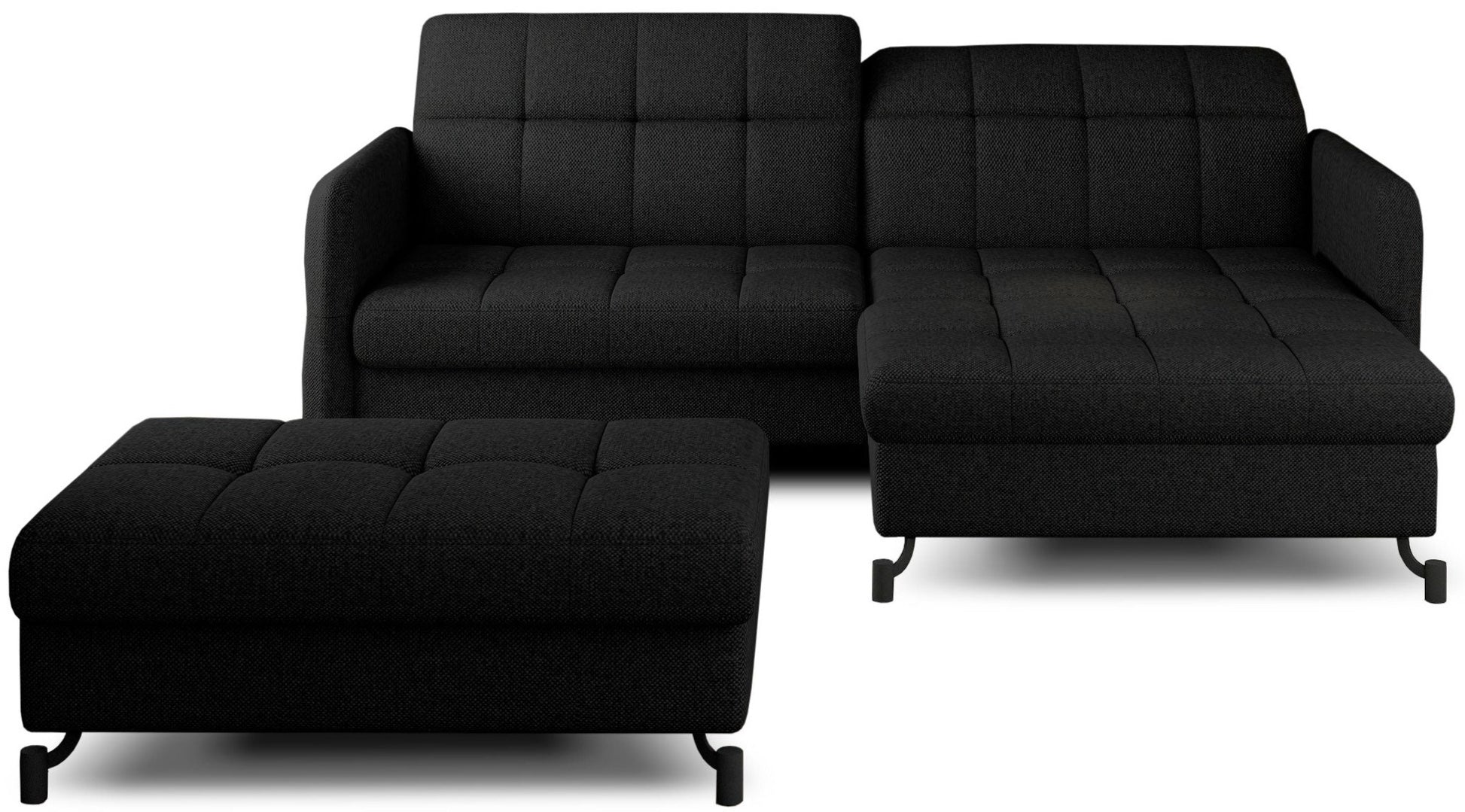 Zestaw Lorelle to rozwiązanie stworzone z myślą o osobach ceniących sobie możliwość szybkiego zbudowania zachwycającej aranżacji. Nasz komplet składa się bowiem z kompaktowego narożnika z funkcją spania oraz dopasowanej do niego pufy. Elegancka linia mebli wraz ze smukłymi, czarnymi nóżkami wykonanymi z metalu sprawiają, że produkty prezentują się niezwykle atrakcyjnie, jednocześnie zyskując wizualnej lekkości. Dodatkowo design ten sprawia, że Lorelle znakomicie wpisze się w wystrój przestrzeni zarówno nowoczesnych, jak i klasycznych. Bez problemu zbudujesz zatem swoje wymarzone wnętrze!