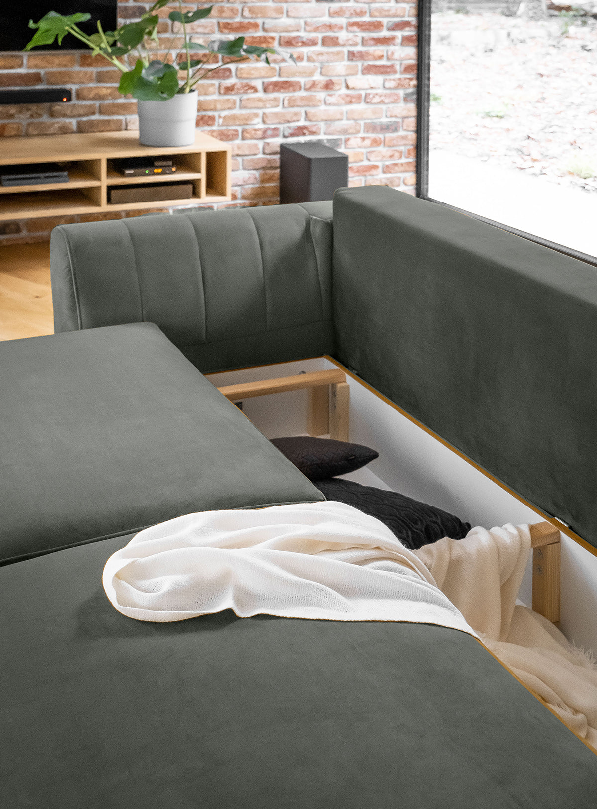 Meble wypoczynkowe Megis to bardzo praktyczny zestaw, w skład którego wchodzą: kanapa o wymiarach - 250 x 95 x 90 cm, fotel – 102 x 94 x 87 cm i puf - 82 x 68 x 42 cm. Meble te cechują się wysokim komfortem użytkowania, ponieważ ich siedziska wykonano z wysokoelastycznej pianki HR. Sprężyny faliste wewnątrz mebli również wpływają na ich poziom wygody i dają możliwość spokojnego wypoczynku. Nóżki kanapy, pufa i fotela to czarna stal o wysokości aż 13 centymetrów. Dzięki takiemu zabiegowi z łatwością można utrzymać czystość pod meblami. Prosta forma, wysokie podłokietniki o niestandardowym kształcie i delikatne przeszycia to cechy wyróżniające zestaw Megis. Prócz walorów wizualnych komplet mebli wypoczynkowych jest także funkcjonalny. Kanapę wyposażono w mechanizm rozkładania typu DL, dzięki czemu zyskujemy funkcję spania o powierzchni: 200 x 145 cm. Sofa posiada także pojemnik na pościel znajdujący się w skrzyni. Puf może posłużyć jako przedłużenie kanapy lub dodatkowe miejsce do siedzenia, a fotel przyniesie ukojenie w niedzielne, leniwe wieczory.