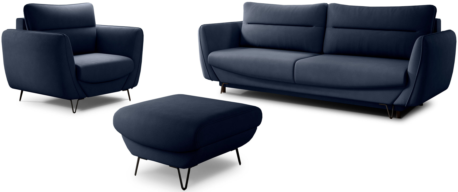 Sposób, w jaki udekorujesz salon, zmienia jego cały wygląd. Jednym z podstawowych elementów, które mogą mieć wpływ na wystrój Twojego salonu, jest oczywiście zestaw mebli wypoczynkowych. Okazuje się, że zaaranżowanie odpowiednio wyglądającego wnętrza to nie takie proste zadanie. Doskonale zdajemy sobie z tego sprawę i dlatego stworzyliśmy uroczy zestaw Silva, który odmieni wnętrze każdego salonu! Z łatwością udekorujesz pomieszczenie za pomocą tego zachęcającego 3-częściowego kompletu, który obejmuje sofę, fotel i puf.