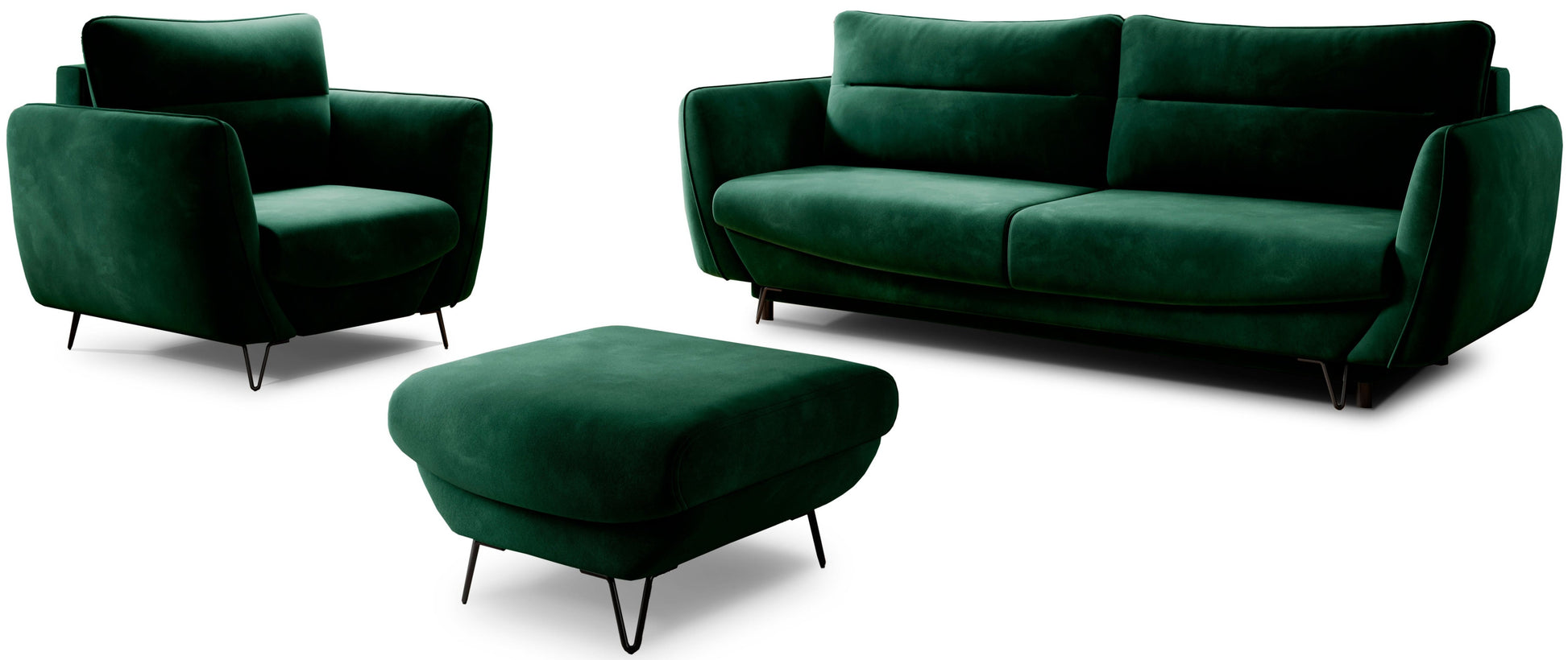 Sposób, w jaki udekorujesz salon, zmienia jego cały wygląd. Jednym z podstawowych elementów, które mogą mieć wpływ na wystrój Twojego salonu, jest oczywiście zestaw mebli wypoczynkowych. Okazuje się, że zaaranżowanie odpowiednio wyglądającego wnętrza to nie takie proste zadanie. Doskonale zdajemy sobie z tego sprawę i dlatego stworzyliśmy uroczy zestaw Silva, który odmieni wnętrze każdego salonu! Z łatwością udekorujesz pomieszczenie za pomocą tego zachęcającego 3-częściowego kompletu, który obejmuje sofę, fotel i puf.