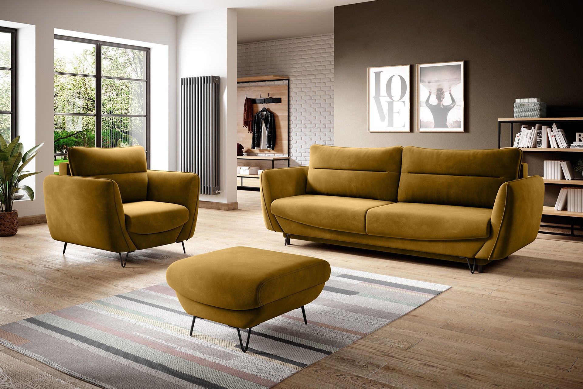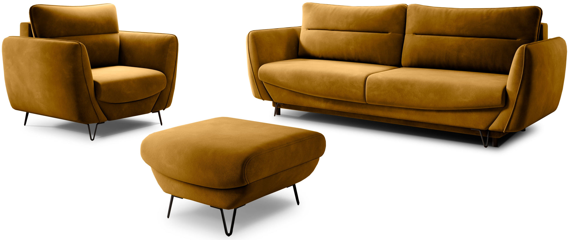 Sposób, w jaki udekorujesz salon, zmienia jego cały wygląd. Jednym z podstawowych elementów, które mogą mieć wpływ na wystrój Twojego salonu, jest oczywiście zestaw mebli wypoczynkowych. Okazuje się, że zaaranżowanie odpowiednio wyglądającego wnętrza to nie takie proste zadanie. Doskonale zdajemy sobie z tego sprawę i dlatego stworzyliśmy uroczy zestaw Silva, który odmieni wnętrze każdego salonu! Z łatwością udekorujesz pomieszczenie za pomocą tego zachęcającego 3-częściowego kompletu, który obejmuje sofę, fotel i puf.
