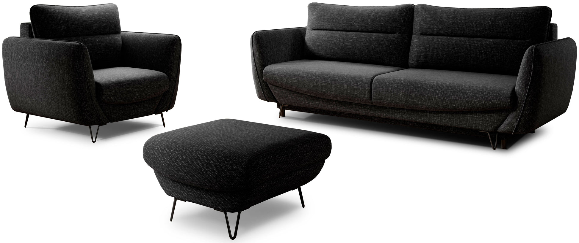Zapewniamy zestaw wypoczynkowy, który stanowi idealne połączenie stylu, wygody i funkcjonalności. Komplet Silva to świetny wybór zarówno do mniejszych pomieszczeń, jak i do dużych wnętrz. Dzięki odpowiedniej konstrukcji meble są minimalistyczne, ale bardzo komfortowe. Wymiary sofy: 236 x 95 x 90 cm, fotela: 93 x 95 x 82 cm, i pufa: 67 x 67 x 42 cm - czyż nie są idealne? Jakby tego było mało, to sofa posiada funkcję spania o powierzchni: 200 x 145 cm. Zdaje się, że to świetne rozwiązanie w przypadku zapotrzebowania na dodatkowe łóżko. Poza tym mechanizm rozkładania DL sprawia, że zamiana sofy w miejsce do spania staje się intuicyjne i dziecinnie proste. Jeśli szukasz jeszcze czegoś w idealnych meblach, to z pewnością jest to pojemnik na pościel. I sofa Silva też go posiada, a przy tym zapewnia miejsce, by przechowywać poduszki, kołdry lub inne tekstylia. To wszystko sprawia, że nasz zestaw Silva jest świetnym wyborem, by miło spędzać czas. Jeśli potrzebujesz chwili relaksu, dobrze trafiłeś - usiądź i odpocznij.