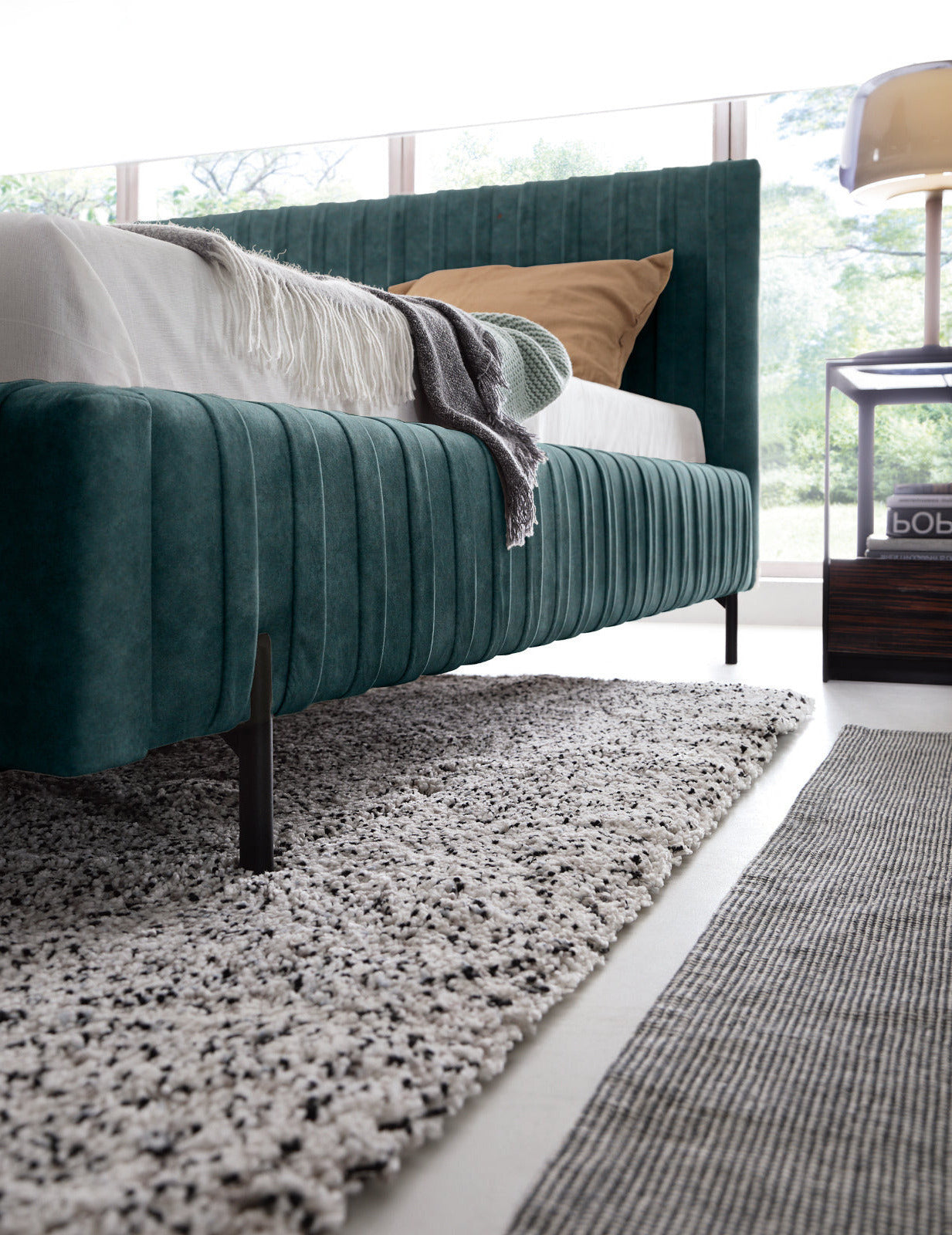 14-centymetrowe nogi łóżka zostały wykonane z malowanego proszkowo metalu, co zapewnia odpowiednią stabilność i skutecznie eliminuje chwianie. Dodatkowo ich wysokość nadaje bryle produktu miłej dla oka lekkości. Okaże się to szczególnie przydatne w mniejszych sypialniach, gdzie optyczne powiększenie przestrzeni jest na wagę złota!
