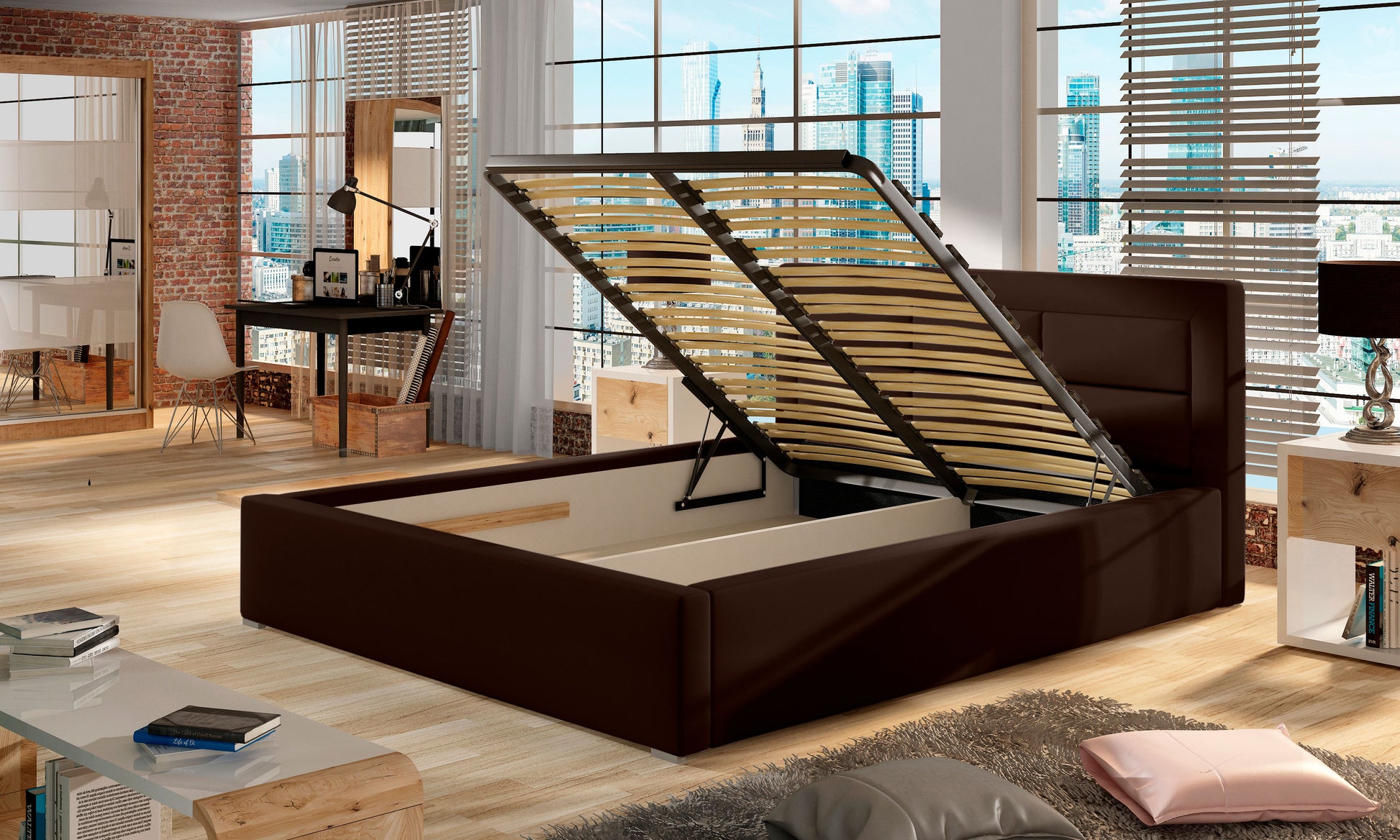 Model Rosano jest zestawieniem nowoczesności z funkcjonalnością. Sprawdzona, prosta konstrukcja gwarantuje wytrzymałość mebla, na który składa się również odpowiednio wyprofilowany stelaż. W ofercie dostępny jest zarówno stelaż drewniany, jak i metalowy. Łóżko posiada dodatkowy atut w postaci obszernego pojemnika na pościel usytuowanego w skrzyni mebla. Dla poprawy komfortu użytkowania, mebel wyposażony jest w podnośnik gazowy, dzięki któremu podniesienie górnej części łóżka do góry jest wyjątkowo proste. Wymiary łóżka 140/160/180/200x200 cm zapewniają maksimum wygody podczas snu, równocześnie sprawiając, że mebel można wkomponować zarówno w przestronną sypialnię, jak i pokój o nieco mniejszym metrażu. Rosano jest łóżkiem bez materaca w zestawie - to umożliwia dopasowanie rodzaju siedziska do własnych preferencji, mając tym samym realny wpływ na jakość nocnego wypoczynku.