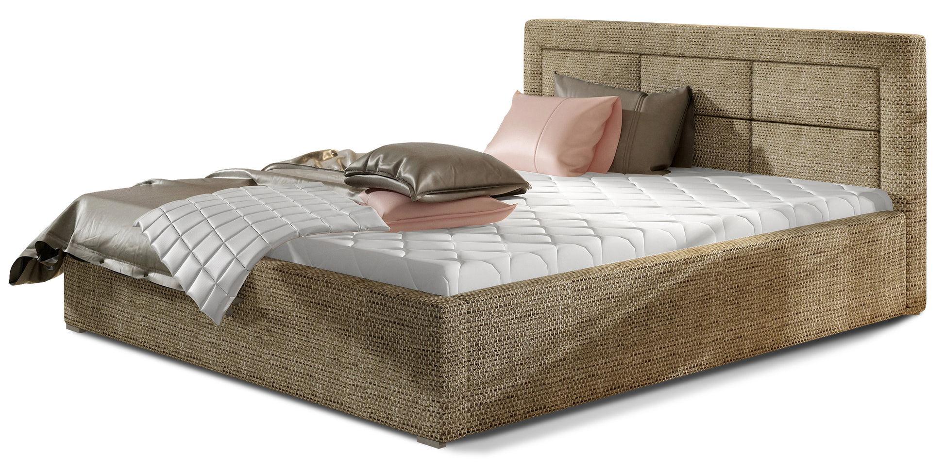 W ofercie dostępny jest zarówno stelaż metalowy, jak i drewniany. Pod nimi znajdziesz usytuowany w skrzyni mebla pojemnik na pościel, który z łatwością poradzi sobie z uporządkowaniem Twoich tekstyliów. Swój nowy dom znajdzie w nim zatem nie tylko komplet pościeli, ale również koc czy dekoracyjne poduszki. Łóżko tapicerowane do sypialni Rosano może posiadać specjalny, gazowy podnośnik. Element sprawia, że dostanie się do wnętrza mebla jest banalnie proste! Zapomnij zatem o codziennej walce ze schowkiem: taka sytuacja nie będzie miała tutaj miejsca.