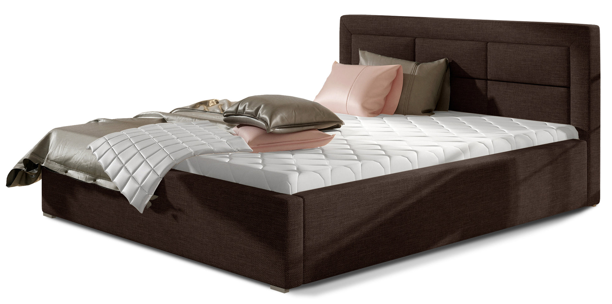 W ofercie dostępny jest zarówno stelaż metalowy, jak i drewniany. Pod nimi znajdziesz usytuowany w skrzyni mebla pojemnik na pościel, który z łatwością poradzi sobie z uporządkowaniem Twoich tekstyliów. Swój nowy dom znajdzie w nim zatem nie tylko komplet pościeli, ale również koc czy dekoracyjne poduszki. Łóżko tapicerowane do sypialni Rosano może posiadać specjalny, gazowy podnośnik. Element sprawia, że dostanie się do wnętrza mebla jest banalnie proste! Zapomnij zatem o codziennej walce ze schowkiem: taka sytuacja nie będzie miała tutaj miejsca.