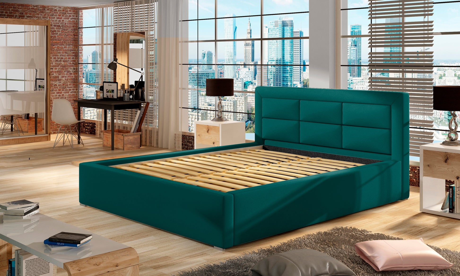 W ofercie znajdziesz zarówno stelaż metalowy, jak i drewniany. Pod nimi, w przestronnej skrzyni, umieszczono obszerny pojemnik na pościel, który skutecznie poradzi sobie z okiełznaniem Twoich tekstyliów. Swój nowy dom odnajdą w nim zatem nie tylko części pościeli, ale również koce czy ozdobne poduszki. Łóżko tapicerowane do sypialni Rosano dopełnia specjalny, gazowy podnośnik. Element powoduje, że dostanie się do wnętrza mebla jest wyjątkowo proste! Zapomnij zatem o konieczności zmagania się z pojemnikiem: taka sytuacja nie będzie miała tutaj miejsca.
