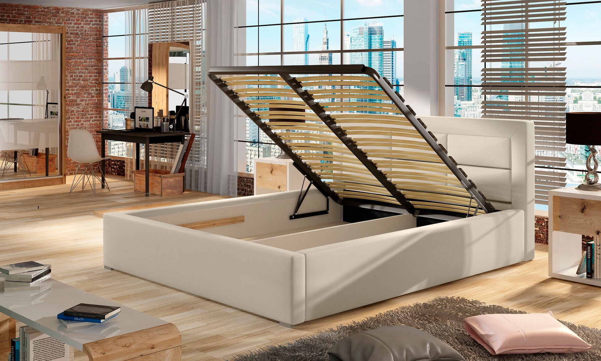 Łóżko tapicerowane do sypialni Rosano pochwalić się może obecnością specjalnego, gazowego podnośnika. Element znacząco ułatwia dostanie się do wnętrza mebla, ograniczając niezbędny do tego wysiłek! Zapomnij zatem o konieczności zmagania się z pojemnikiem: taka sytuacja nie będzie miała tutaj miejsca.